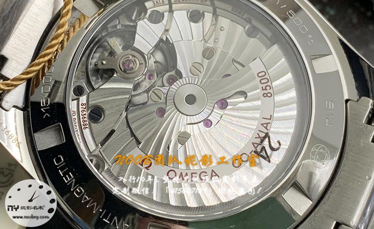 VS厂在细节处理上同样不遗余力。机芯的避震位置设置在六点钟位置,摆轮设计成了与正版同步的黑色,这些细节的处理使得腕表在外观上更加接近正品。此外,表带外缘和内缘分别采用了抛光与拉丝技术,不仅提升了佩戴的舒适性,也增添了腕表的整体美感。搭配的蝴蝶表扣上装饰有欧米茄的经典电阻符号LOGO,更是将细节处理得淋漓尽致。