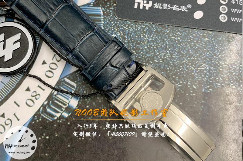 ZF厂V5版的表带采用小牛皮材质,表面压鳄鱼皮纹路,营造出一种竹节的感觉。折零表扣由精钢打造,表壳的倒角处打磨得很光滑。表扣上IWC品牌浮雕做得也很细致,立体感十足。这一设计不仅提升了佩戴的舒适度,还增添了手表的奢华感。