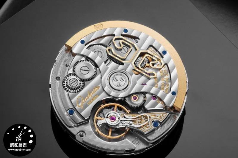 自1888年诞生起,格拉苏蒂的鹅颈微调便以功能性艺术化的设计惊艳业界。这一装置通过调节螺丝改变鹅颈弹簧的曲率,从而微调游丝有效长度,实现走时精准度±1秒/天的极致控制。其造型灵感源自天鹅优雅的脖颈曲线,流畅的弧线与镜面抛光工艺,让冰冷的金属部件化作腕间的雕塑艺术品。