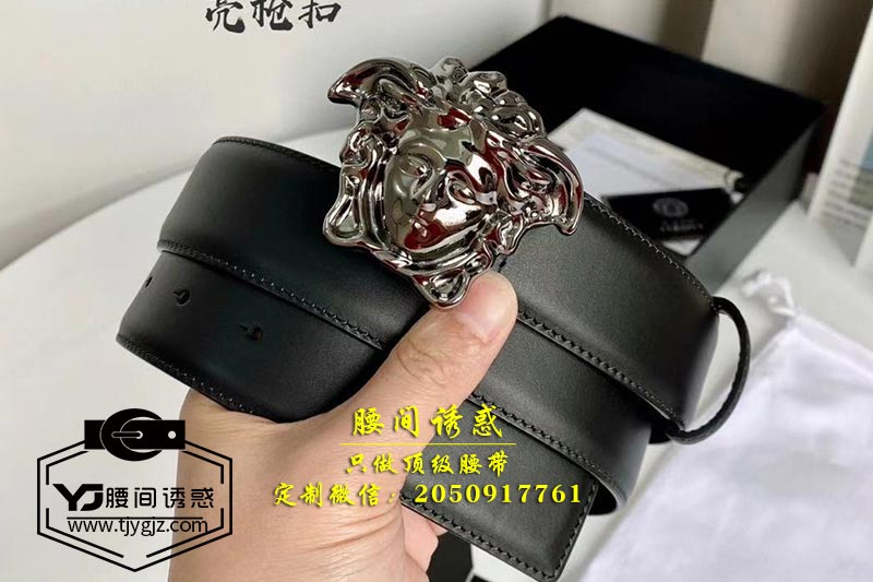 正品美杜莎头顶的蛇头支起较高,栩栩如生;仿品头顶的蛇头似趴在头上,模糊不清晰。从腰带的皮肤象形文字:范思哲皮带一根带皮纹,一根不带皮纹,细节决定了评估的成败。看压纹的背面:范思哲皮带的背面原件上有徽标,产地,大小的压纹,模仿什么也没有。